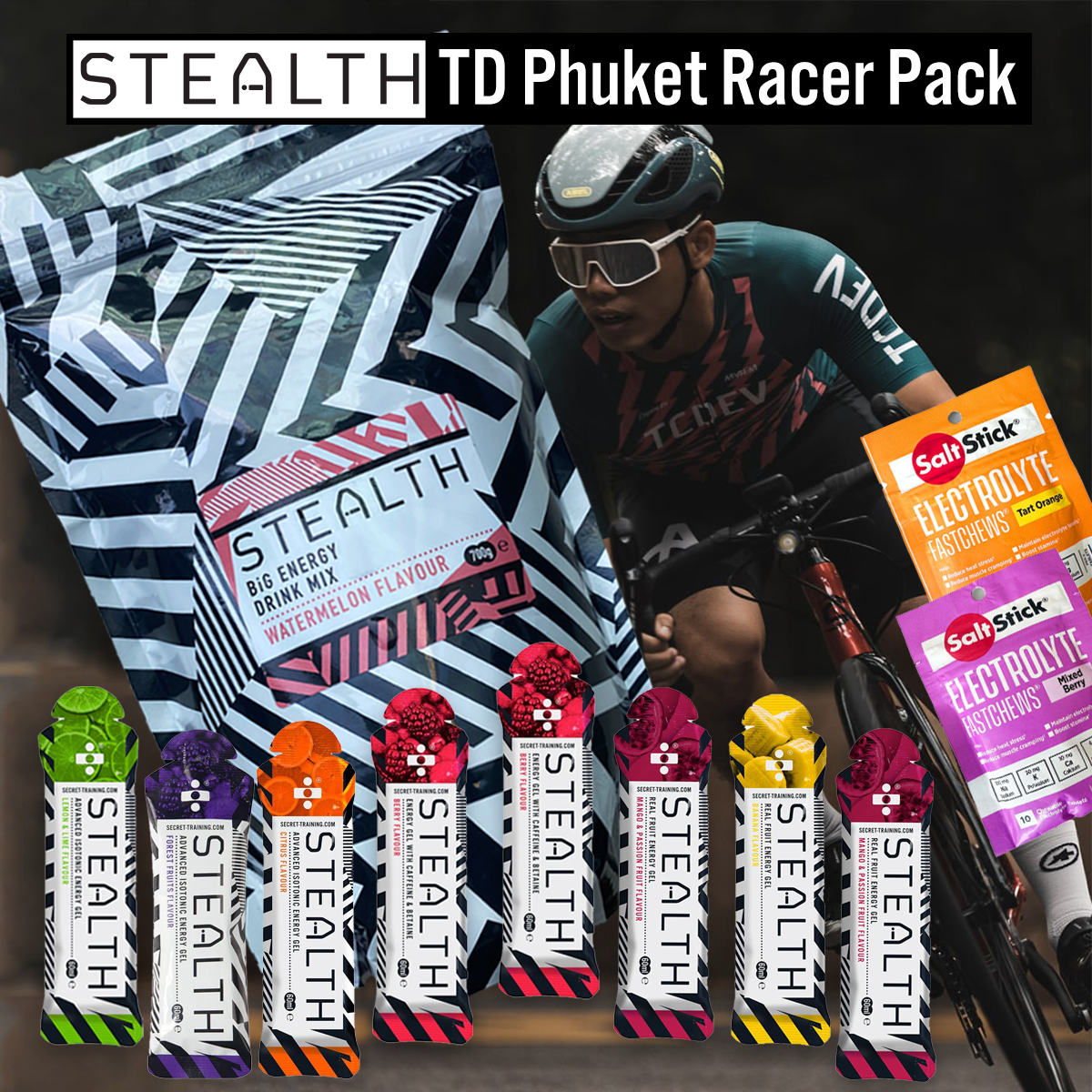 A carefully selected set of race day products for an effective fuelling plan from STEALTH as used by our champion pro-team partners on Grand Tours.